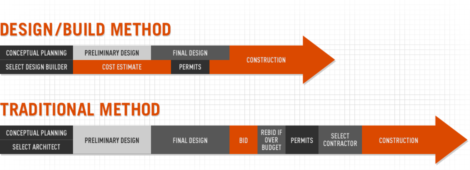 Over the years, most major building projects have taken the form of design-bid-build, meaning an engineering firm designs it, the project owner puts it out to construction firms for bid and selects a general contractor, and then that contractor constructs the project. Design-Build is when an engineering firm and construction firm collaborates up front to present a bid to the project owner to design and build the project in a single package. This saves time, as it eliminates a step in the project sequence, and in many cases, construction on some phases can begin before the entire design process is complete. It can also reduce animosity between the engineering firm and contractor.